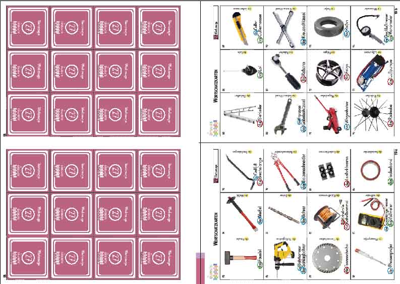 - 244 Karten zu Werkzeugen (48 Karten aus dem Ergänzungswortschatz und 196 weitere)